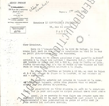 En réponse à cette lettre et comme lui avait suggéré Albin (...)Il va sans dire que, si dans vos cartons, vous avez quelques projets de petites villas répondant aux desideratas suivants(...)