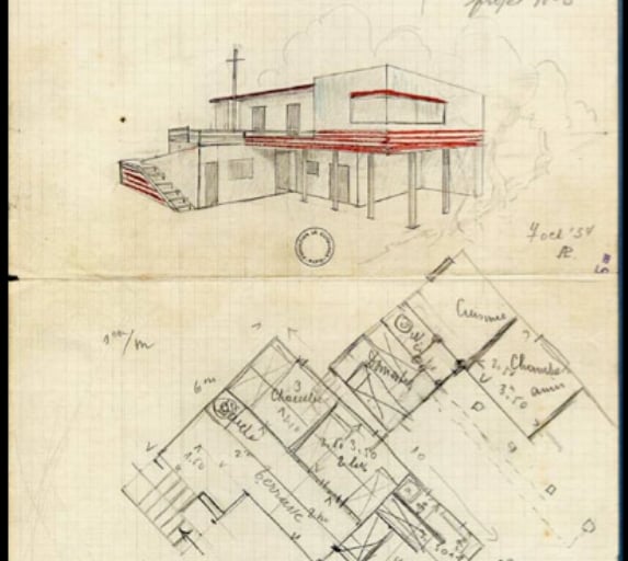 Le premier croquis de la maison est dessiné par Le Corbusier :